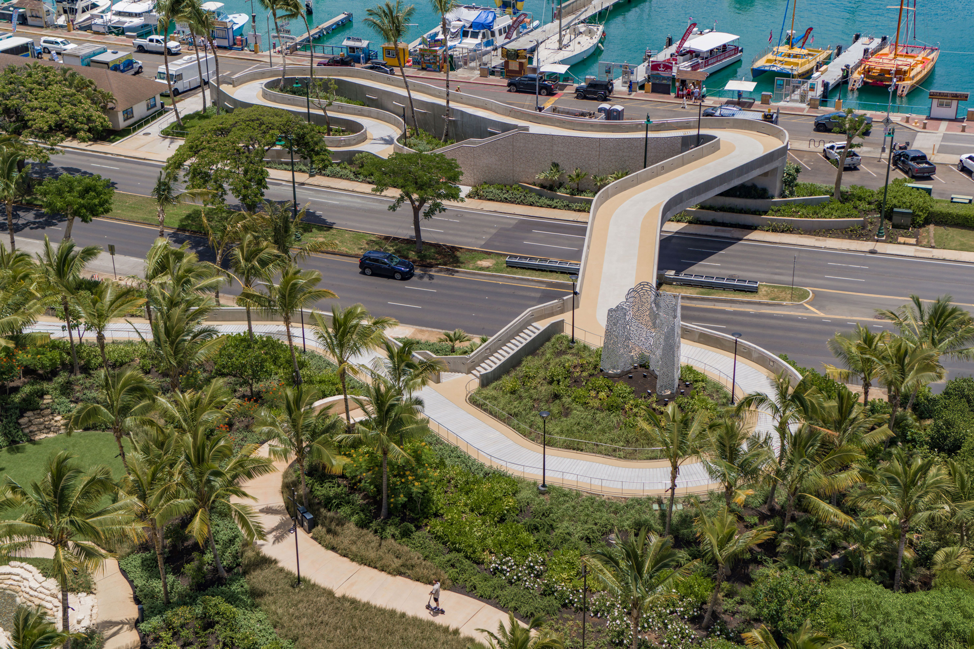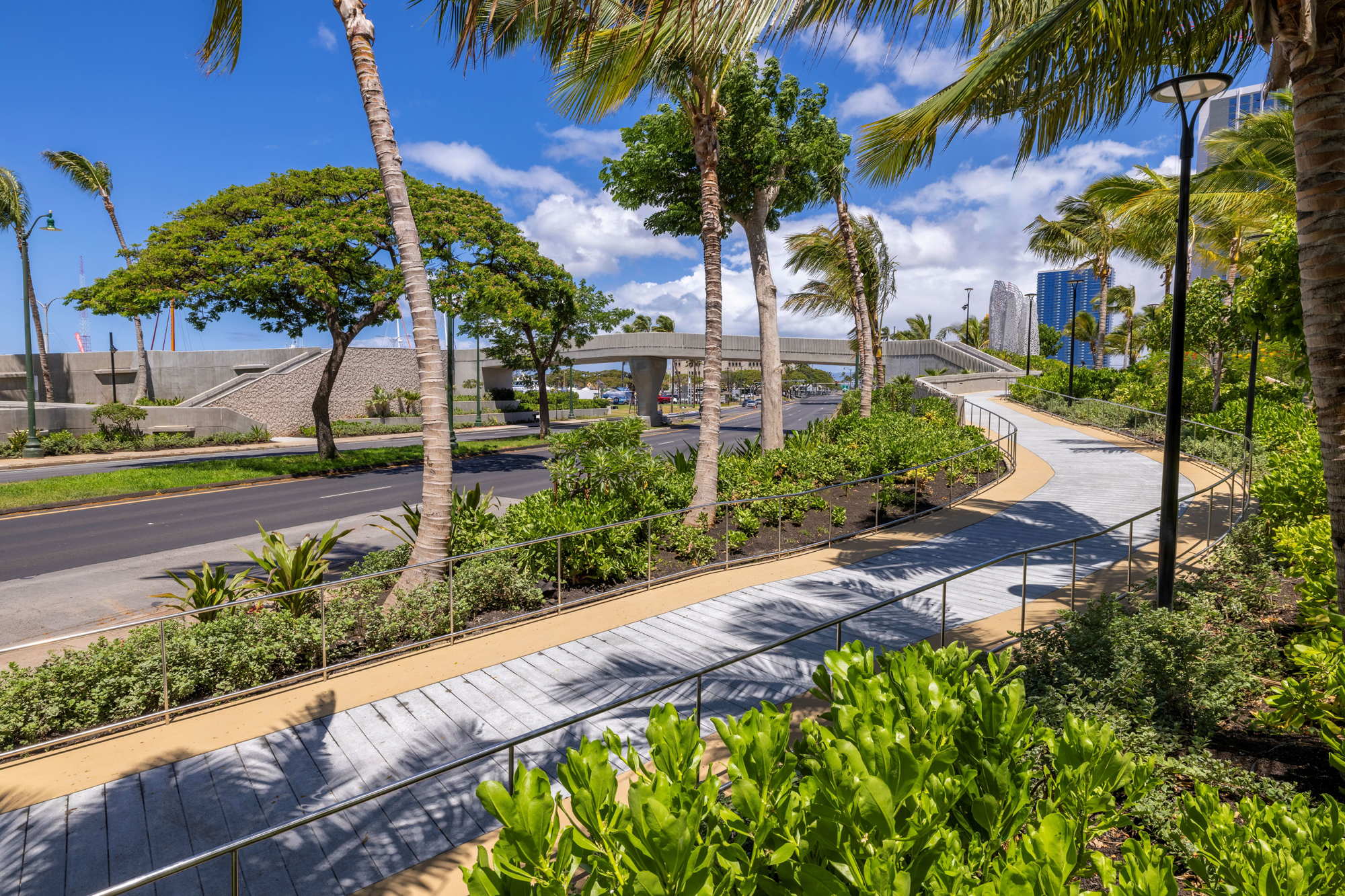 The uniquely designed, elevated walkway will enhance community connectivity by providing access to Ala Moana Beach Park and Kewalo Harbor.